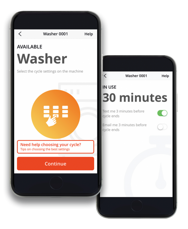 Work gear gets filthy, and time off-site costs money. Use the app to check machine availability, start a load remotely, and get notified when it’s done — so you can be in, out, and back to work without losing hours hanging around.
